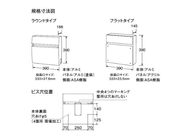 こちらは、【ラウンドタイプ】と【フラットタイプ】の2タイプのポストとなります。